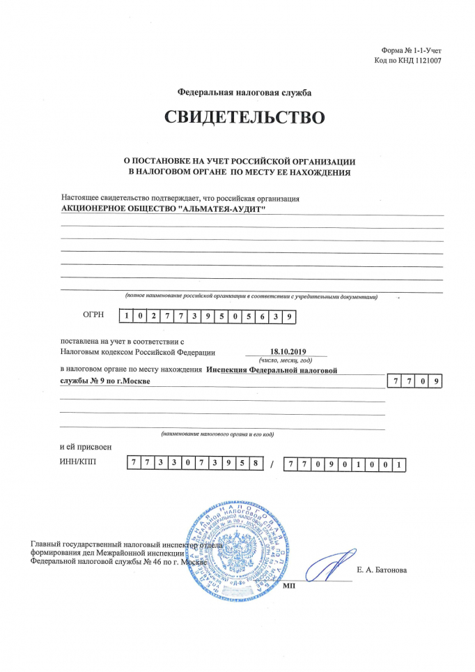 Полное наименование: Акционерное общество "Альматея-аудит"