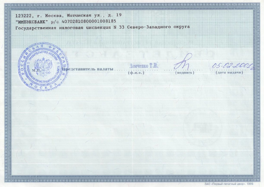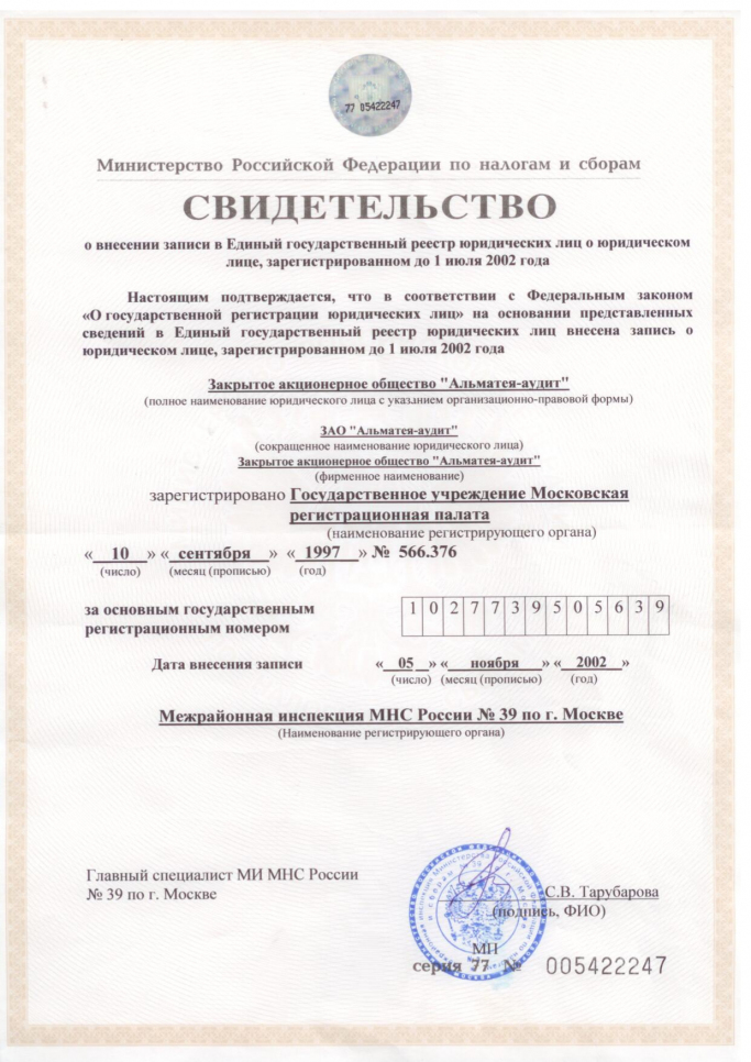 Дата государственной регистрации юридического лица: 10.09.1997