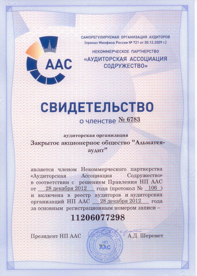 Полное наименование: Акционерное общество "Альматея-аудит"